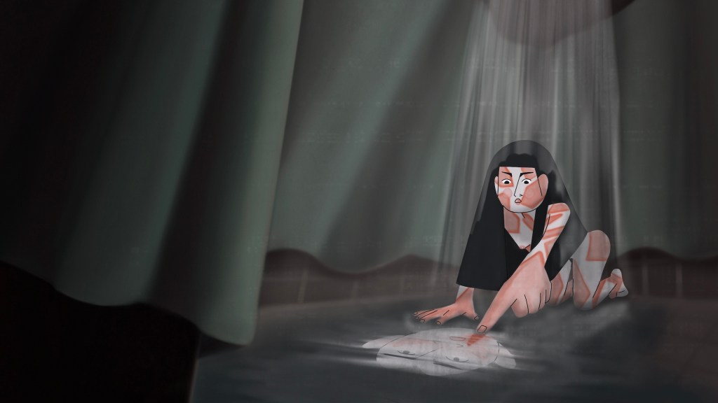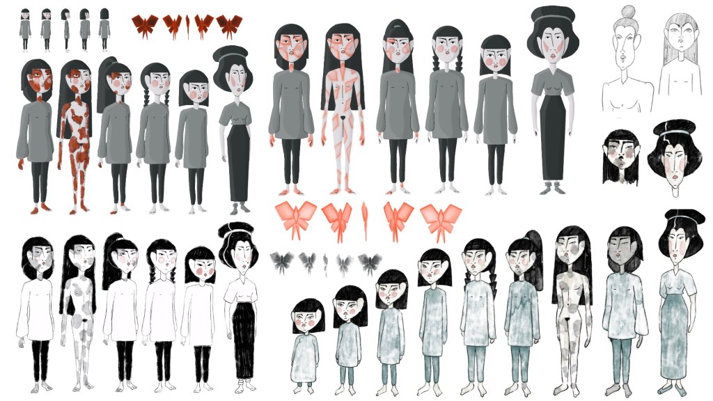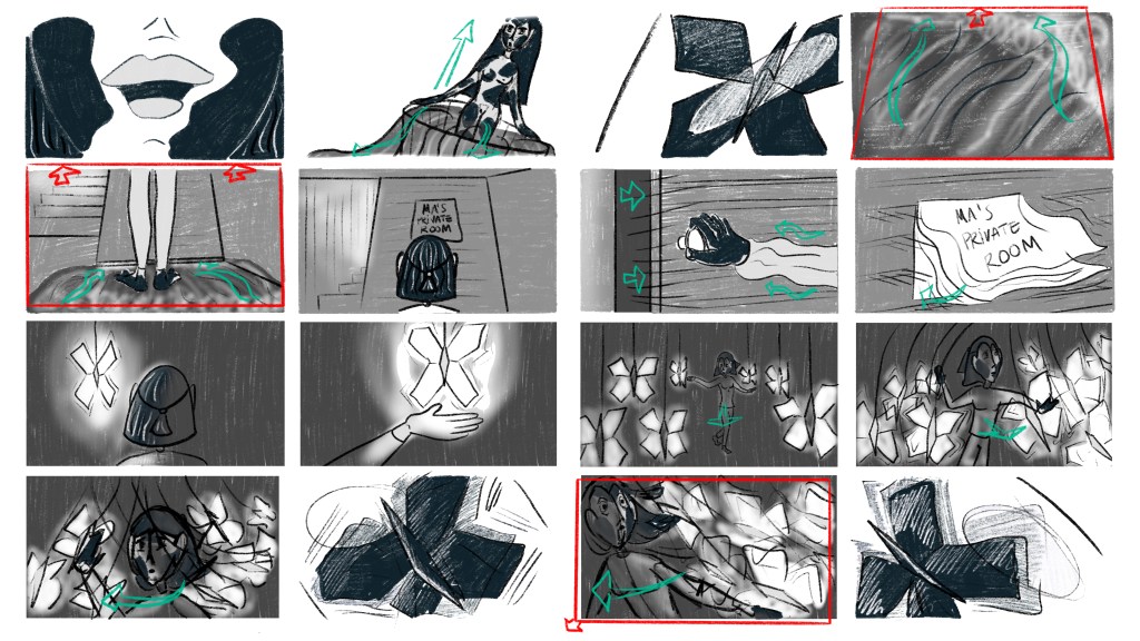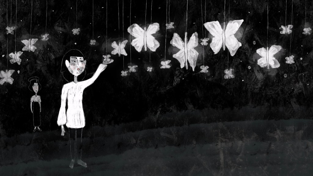 «The Message of Monarch Butterflies» is a metaphorical tale exploring transgenerational traumas, where symbols play a paramount role in weaving a story that delves into the complexities of healing and resilience. The viewers are invited to follow a black butterfly to be witnesses of Moon’s conventional childhood, only to explore her entanglement in a tumultuous relationship with her mother, Ma, who resists to share her past. In this 2D animation short film, in which ink has its own role, the characters try to thrive through their mothers’ alienation, while images of transformation lead them to face a reality that «must not be told.»